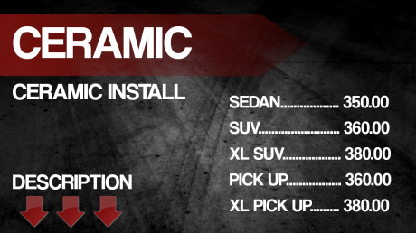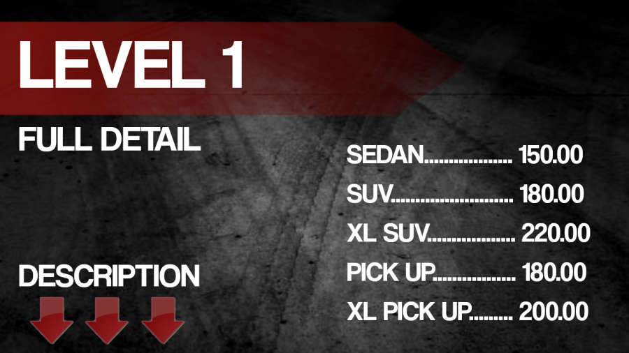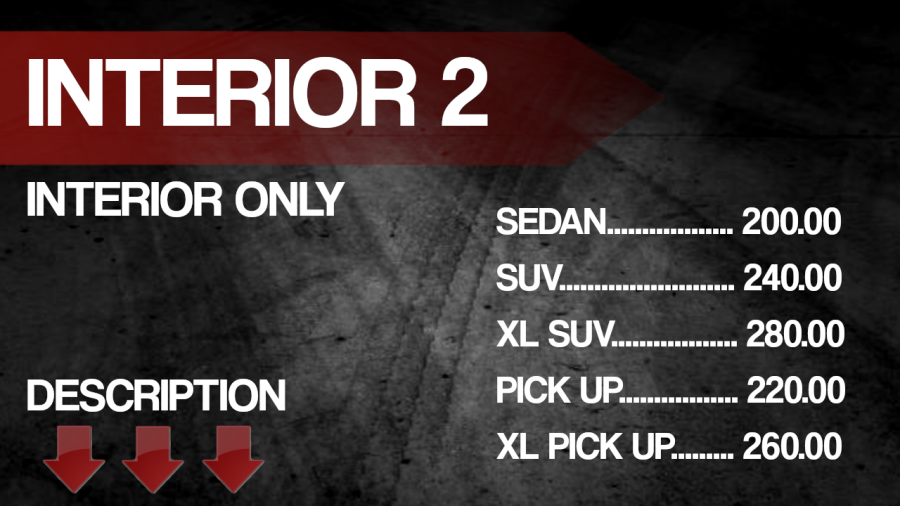 HAND WASH, WHEELS CLEANED, TIRE SHINE, CERAMIC SPRAY PROTECTION